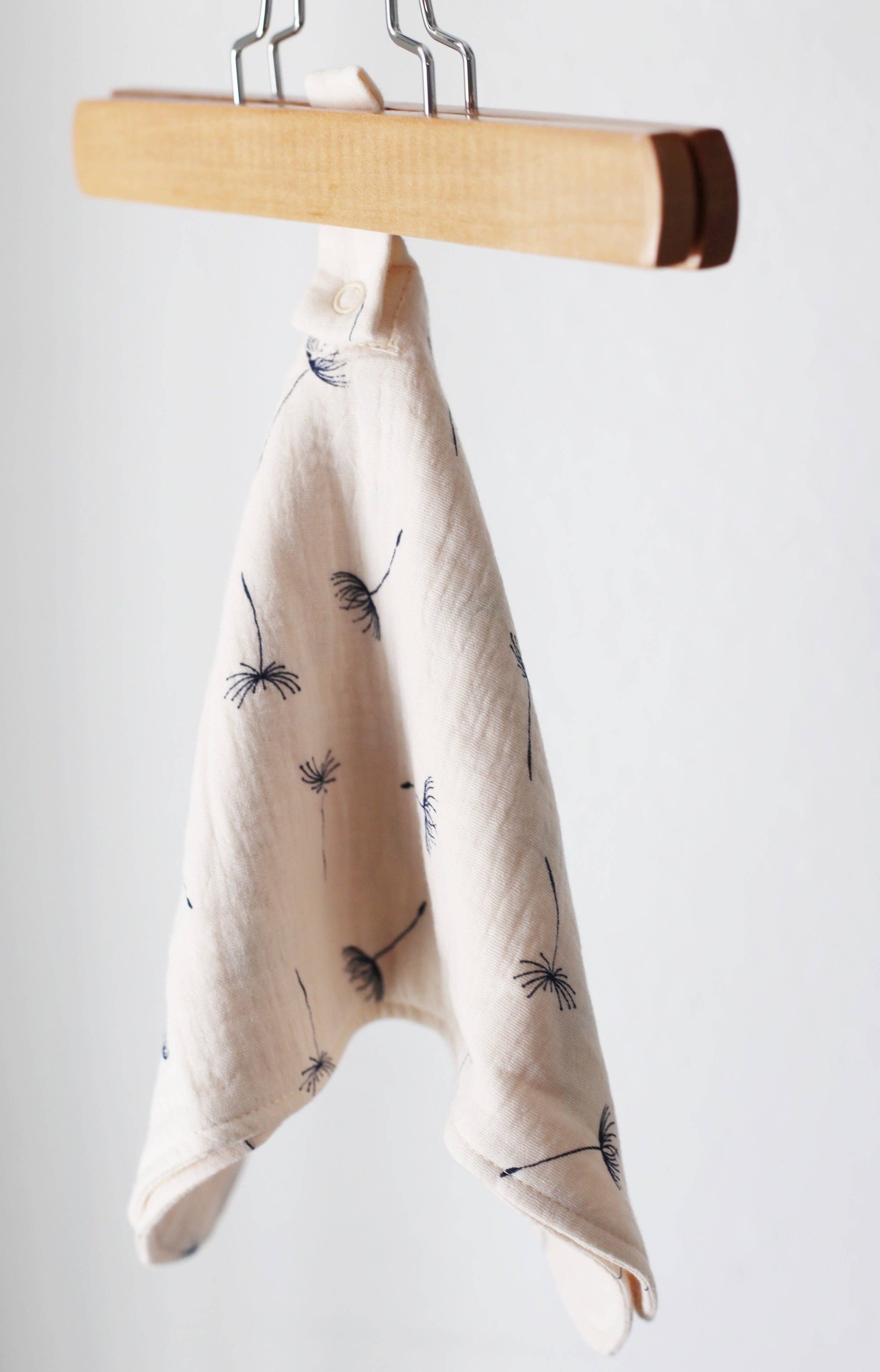 This floral vanilla lovey blanket with snap closure (Pacifier and Teether not Included) is made from a double layer of 100% soft organic cotton muslin that is soft and lightweight, perfect for all seasons and will not irritate sensitive skin. Simply attach your baby’s favorite pacifier or teether through the fabric loop in the center of the blanket and secure it with the snap closure. Your little one will love the added security of a soft blanket to cuddle with that’s just their size. Our unique design and the quality fabric of our blankets make them stand apart.