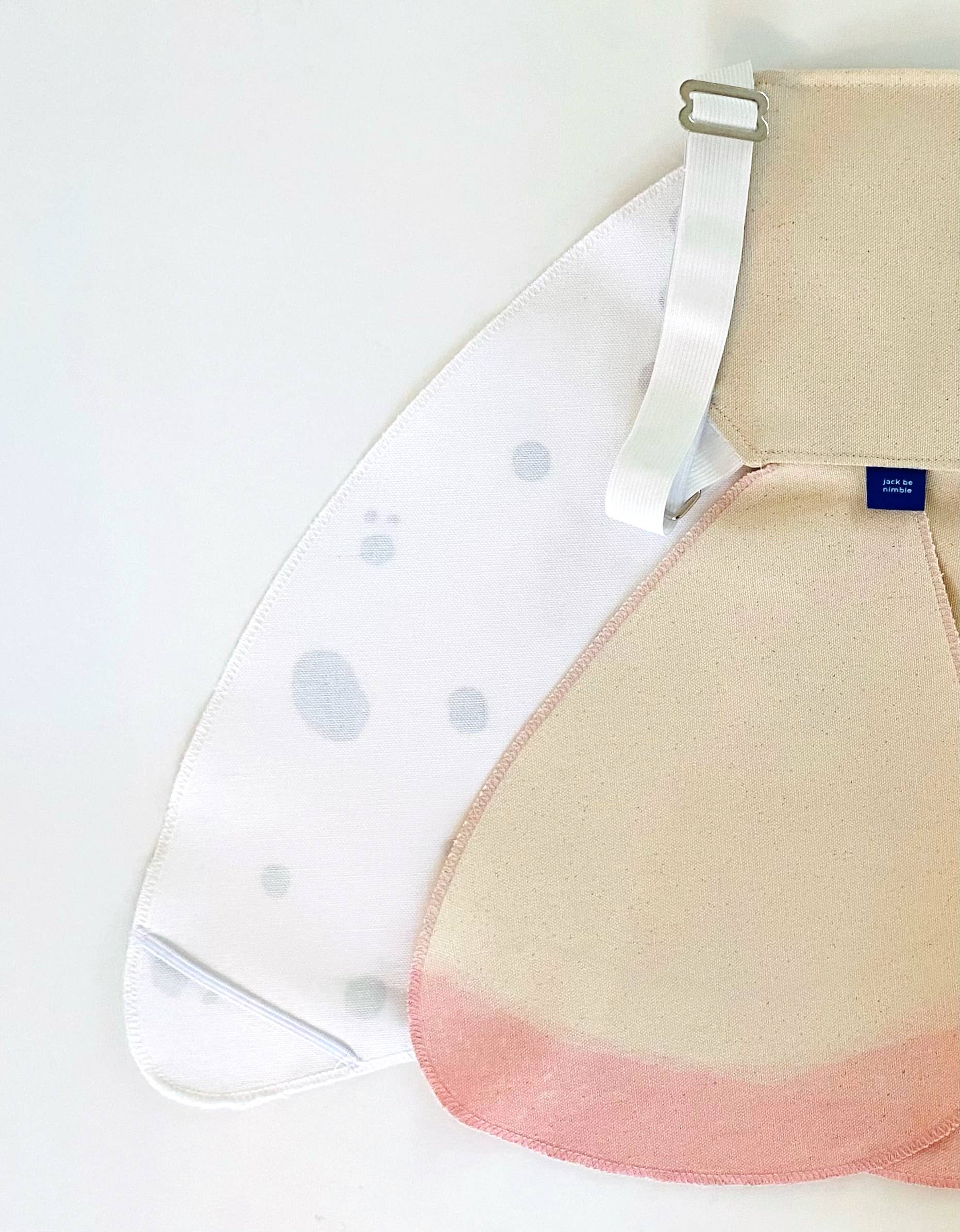 These spotted moth costume wings will spark hours of pretend play fun and nature inspired imaginative play! A faux fur detail adorns the white wings and the two lower wings are hand dyed to give this moth outfit the most magical pink touch. A creative gift option for indoor or outdoors, this moth toy will delight little boys and girls of all ages. Complements any Montessori or Waldorf inspired playroom.
